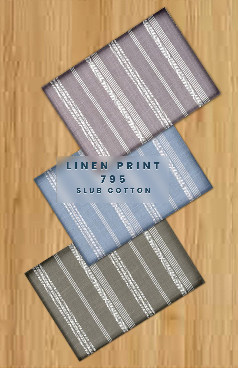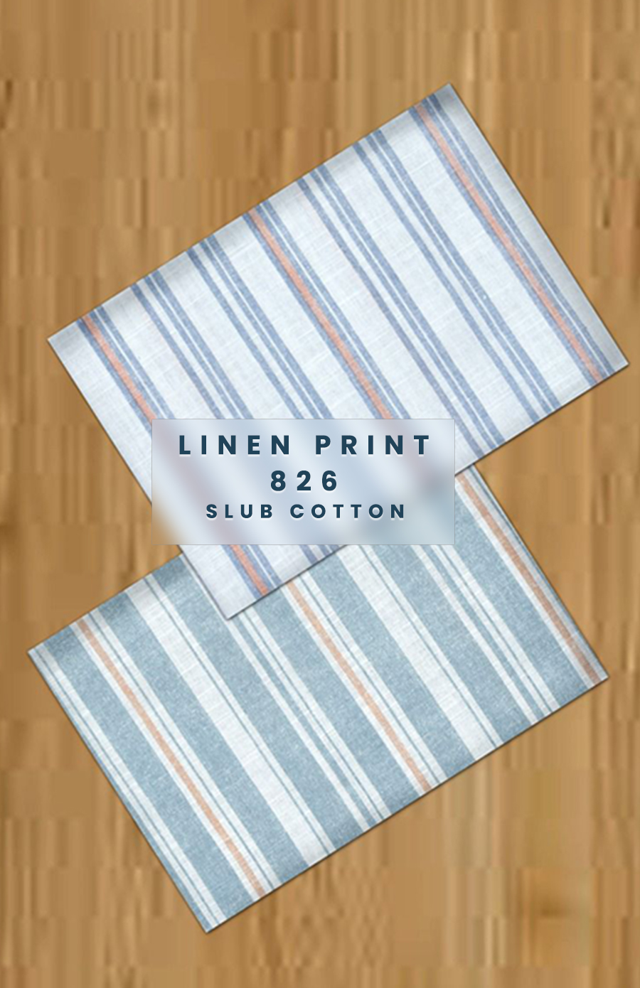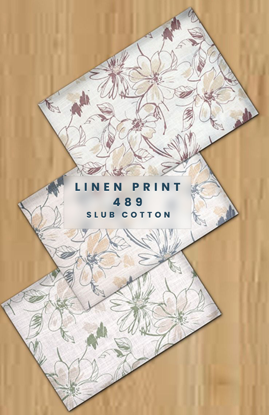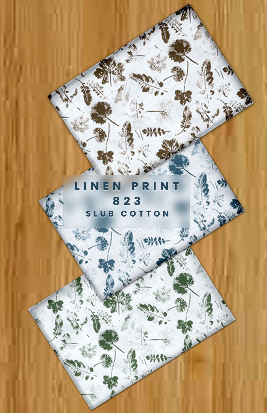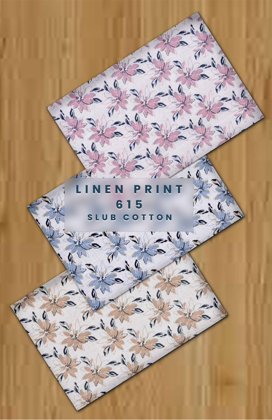 Slub linen print fabric features a distinctive texture with irregular, thick-and-thin yarns, creating a rustic, tactile feel. Made from natural linen fibers, it showcases printed designs that add charm and character. Renowned for its breathability and durability, this fabric is perfect for stylish, comfortable Clothing.